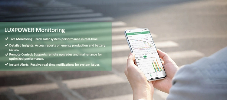 Systemet levererar intelligent energihantering med omfattande övervakning och adaptiva driftslägen, vilket ger användare möjlighet att optimera energianvändningen enkelt. Lux Power SNA-US 12000 är designad för tillförlitlighet och kombinerar högpresterande hårdvara med avancerad nätflexibilitet för att stödja uppdragskritisk säkerhetskopiering och scenarier utanför nätet.