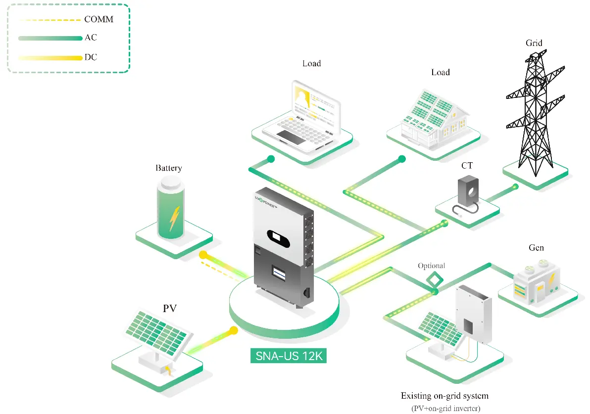 LuxPower SNA-US 12000 är en kraftfull och effektiv inverterlösning utanför nätet utformad för split-fasmarknaden.